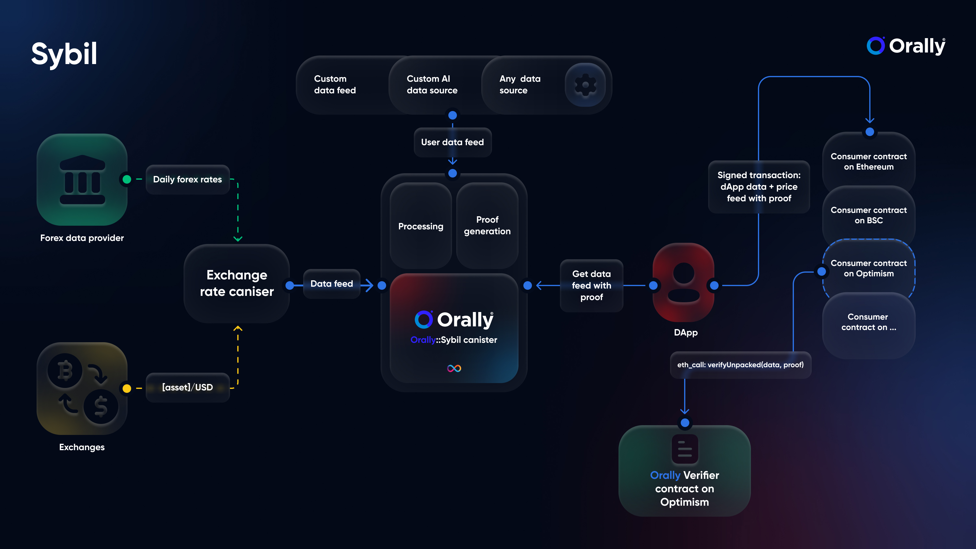 Orally works by integrating various specialized modules into a cohesive unit, offering a spectrum of services essential for the thriving dApp ecosystem. It maintains a steadfast commitment to decentralization, security, and user-centric design. By providing a bridge between the blockchain and the real world, Orally is not just a platform; it's the architect of a future where the potential of dApps can be fully realized.